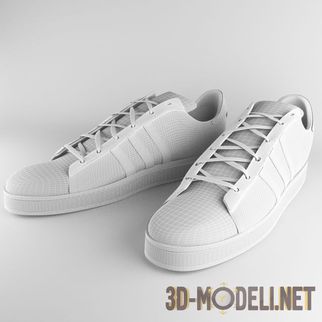 Невысокие мужские кеды Adidas campus. Чёрный текстиль верха хорошо сочетается с белой плоской подошвой, белой широкой шнуровкой и характерными стилистическими деталями бренда – тремя полосками и лого.