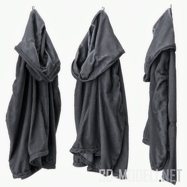 Две модели мужской куртки свободного покроя с капюшоном темно-серого цвета. Одна из моделей прижата к стене, а другая свободно висящая. При разработке интерьера прихожей можно выбрать более подходящую модель. Материалы для Corona и Vray.