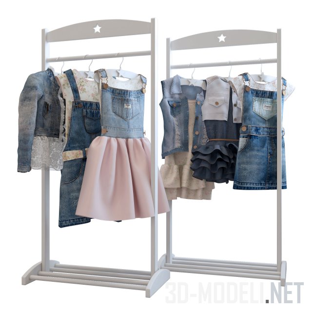 Семь очаровательных разнообразных джинсовых вещей: платья, юбки, сарафанчики. Идеальная модель для интерьера детской гардеробной комнаты маленькой принцессы.