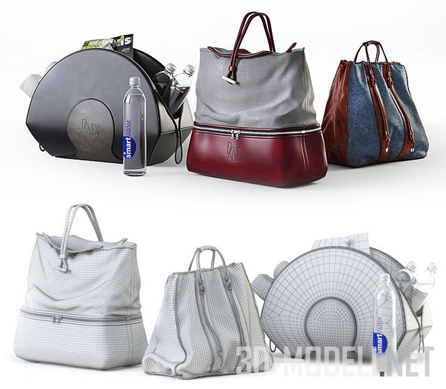 Качественный набор из трех сумок Dandy, каждая в двух вариантах цвета. В комплекте бутылка воды Glaceau Smart Water.