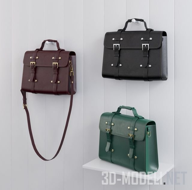 Кожаные сумки-портфели с наружными застежками и дополнительной длинной ручкой. Сумки предлагаются в трех цветах – коричневая, темно-коричневая и зеленая.