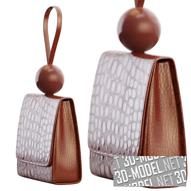 Современная красно-коричневая сумка-тоут Bag Ball. Выполнена из красно-коричневой кожи с рельефным тиснением, имитирующим кожу крокодила. Сумка с клапаном без видимой застежки оснащена оригинальной ручкой-петлей с большим шаром в цвет сумки.
