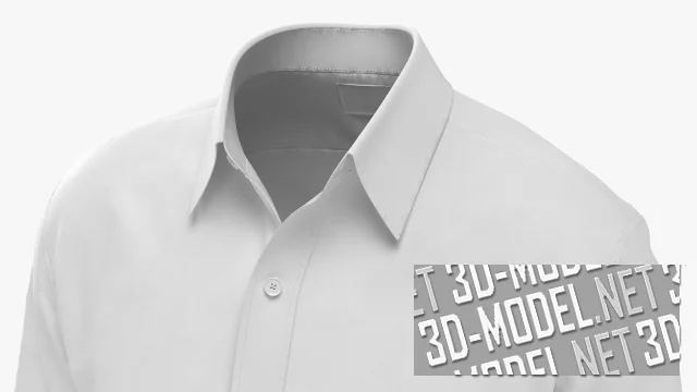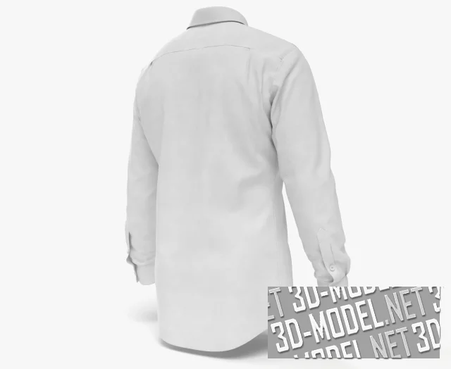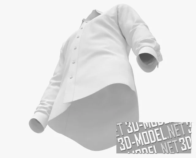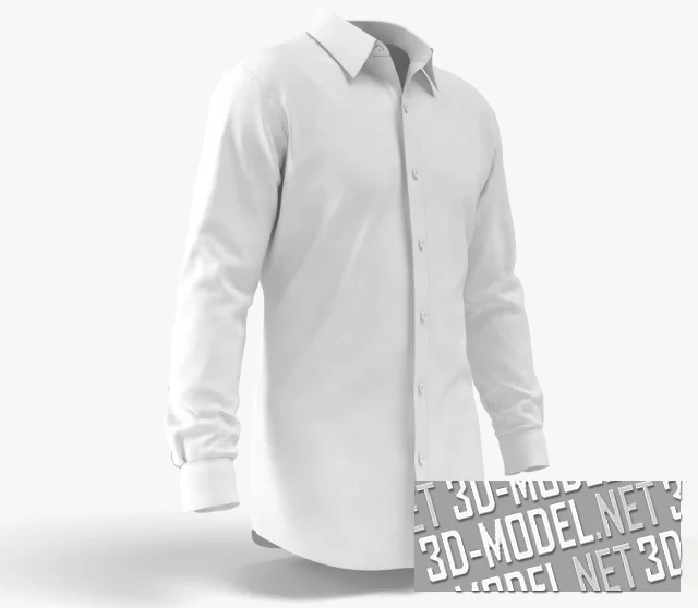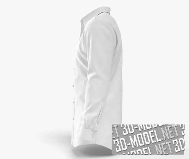 Реалистичная белая мужская сорочка с длинным рукавом. Верхняя пуговица расстегнута.