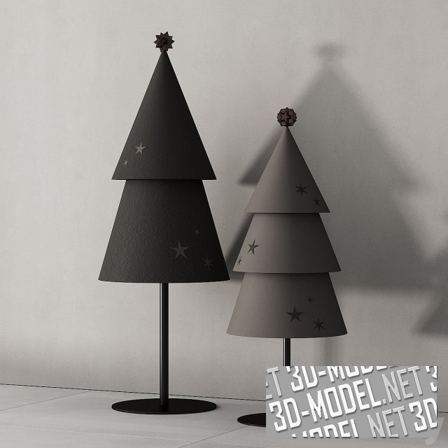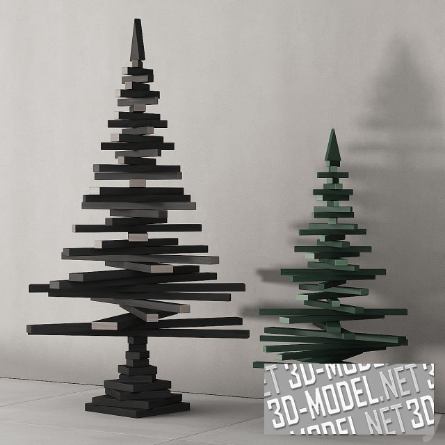 Четыре варианта современных минималистичных елок для украшения на Новый год. Использованы при изготовлении следующие материалы: бумага, картон, пластик, дерево, стекло, металл, кожа, LED-подсветка и ткань. Каждая из елок подойдет для использования в интерьере в различных стилях, таких как модерн, минимализм, скандинавский стиль, ваби-саби и пр.