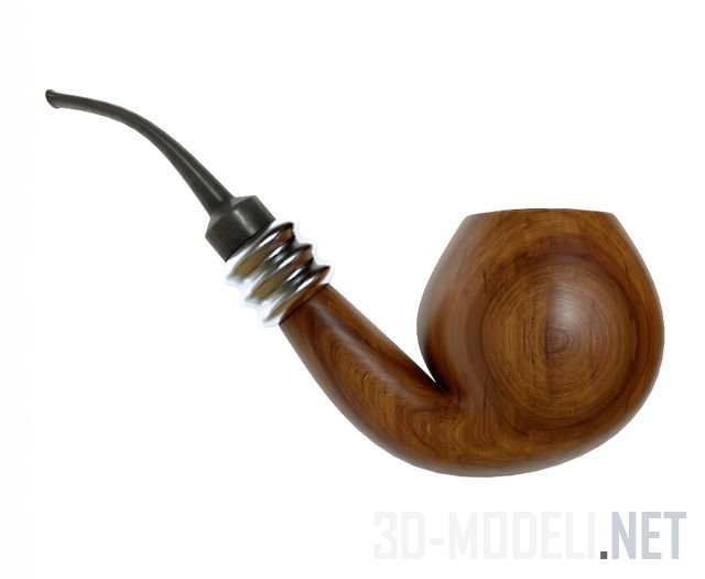 Декоративная курительная трубка, выточенная из красновато-коричневого дерева ценной породы с металлическими насечками на мундштуке. Аксессуар будет уместно смотреться на письменном столе в интерьере кабинета, выполненного в английском стиле.