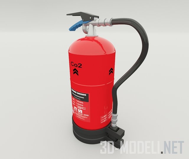 Обычный CO-2 огнетушитель. Довольно аккуратная 3д-модель с проработанными деталями. Текстуры имеются, материалы настроены.