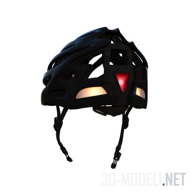 Велосипедный шлем черного цвета, с задними и передними фарами. 3d модель с текстурам в архиве.