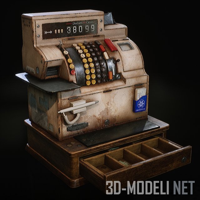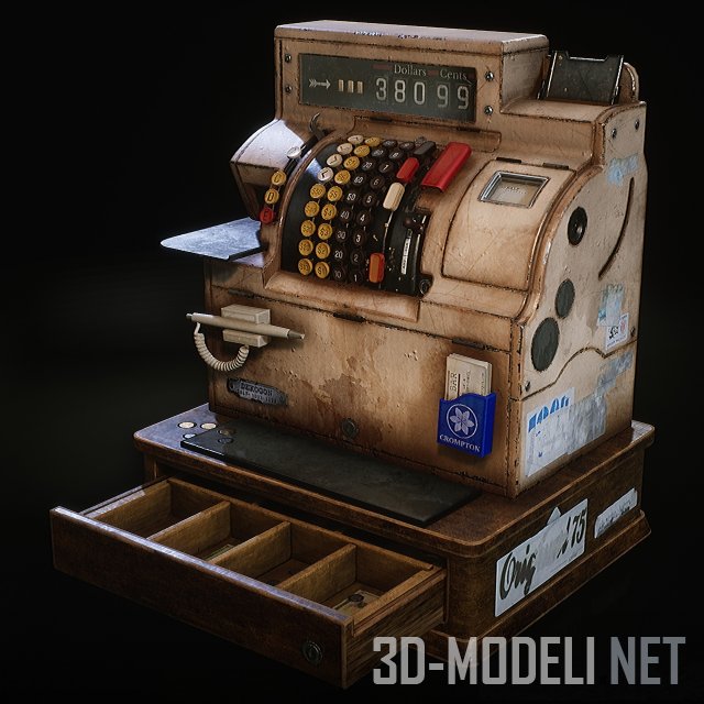 Реалистичная 3D-модель винтажного американского кассового аппарата. В комплекте набор PBR текстур с имитацией царапин и потертостей.