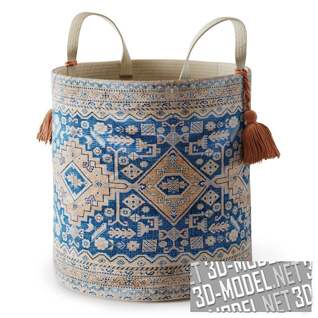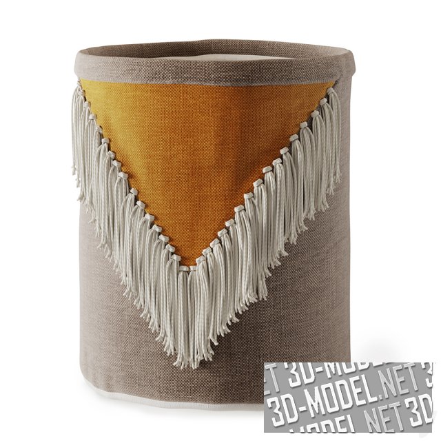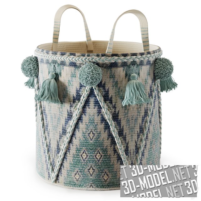 Четыре плетеные корзины, декорированные различными узорами, бахромой кистями и пр. Реалистичная трехмерная модель для различных проектов. Все текстуры присутствуют.
