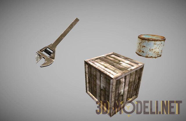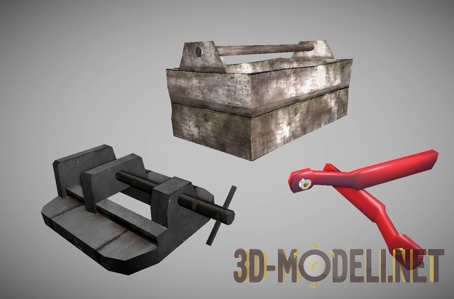 3D модель набора предметов для гаража в формате low-poly: различные ящики, тиски, инструмент и проч. На все модели сделана развертка, все текстуры есть. Готова для использования в играх.