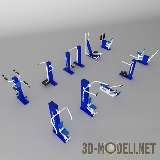 3D-модель уличных тренажеров ROMANA. Комплект уличных тренажеров ROMANA, в количестве десяти единиц, от производителя спортивного и игрового оборудования для улицы, дома или спорткомплексов, предназначенное для детей и взрослых. По-настоящему современные и качественные, отвечающие целому ряду необходимых требований, такие тренажеры отлично впишутся в соответствующий проект.