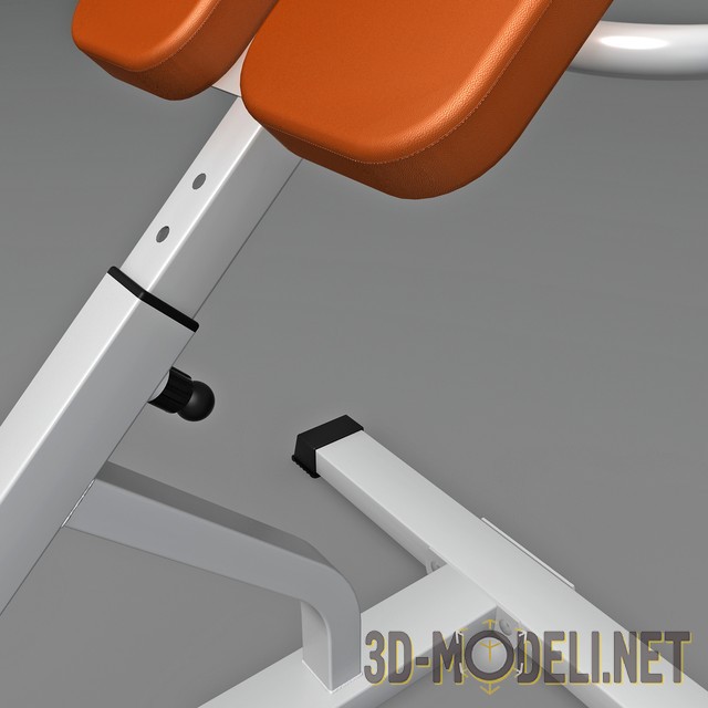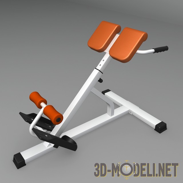 3D-модель тренажера для тренировки спины, ягодиц и бедер. Относительно компактный тренажер, позволяющий выполнять комплекс упражнений для развития выпрямителей спины, а также ягодичных мышц и бедер.