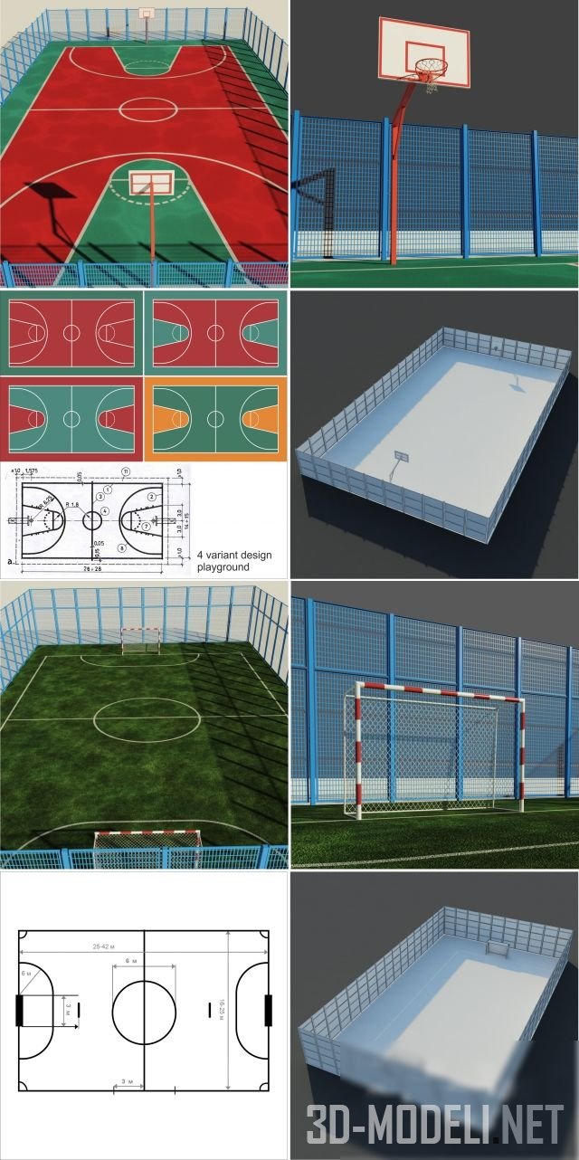 Реалистичная 3d модель набора спортивных площадок: для баскетбола, футбола, волейбола, тенниса. Текстуры в архиве.