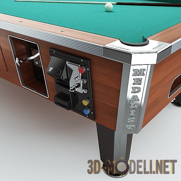 3D-модель 8-ми футового коммерческого бильярдного стола для пула (американский бильярд). Эти столы снабжены жетонными механизмами и предназначены для установки в клубах. В архив входит также пак киев и шаров.