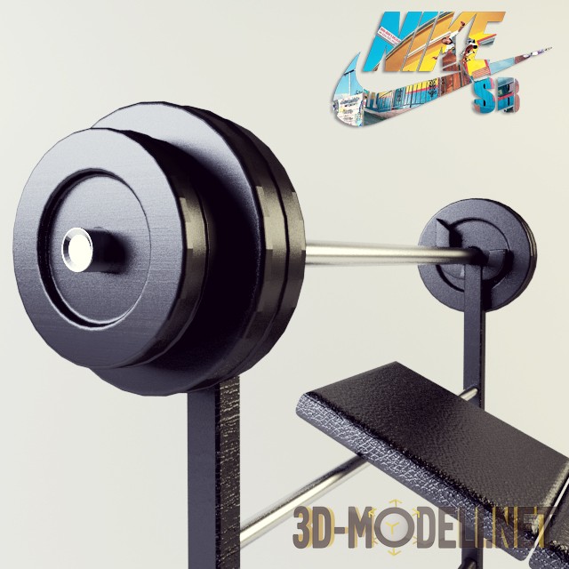 3D модель скамьи для жима Nike. Тренажер сделан из стали, покрыт защитной краской, спинка и сиденье мягкие, что обеспечивает максимальный комфорт во время тренировки. Материалы все настроены, текстуры присутствуют.