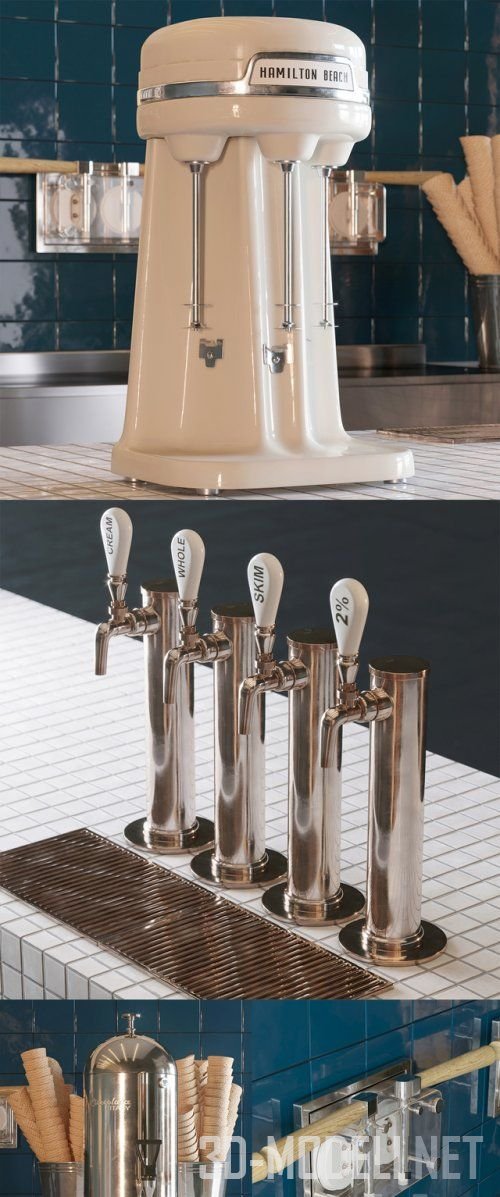 Реалистичная 3D модель оборудования и аксессуаров для производства популярного итальянского десерта Gelato. Все текстуры собраны в архиве.