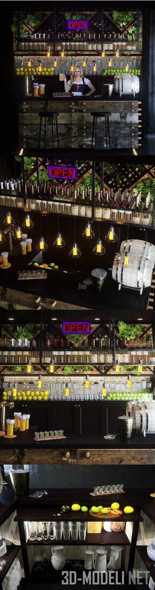 Сверкая неоновой вывеской OPEN, для любителей открыт пивной бар. Не менее завлекательно выглядит молодая девушка-бармен, в традиционном баварском наряде, в игривой позе и кружкой свежего пива. Витрина в изобилии предлагает фрукты (лимоны, апельсины), и, разумеется, широкий ассортимент напитков.