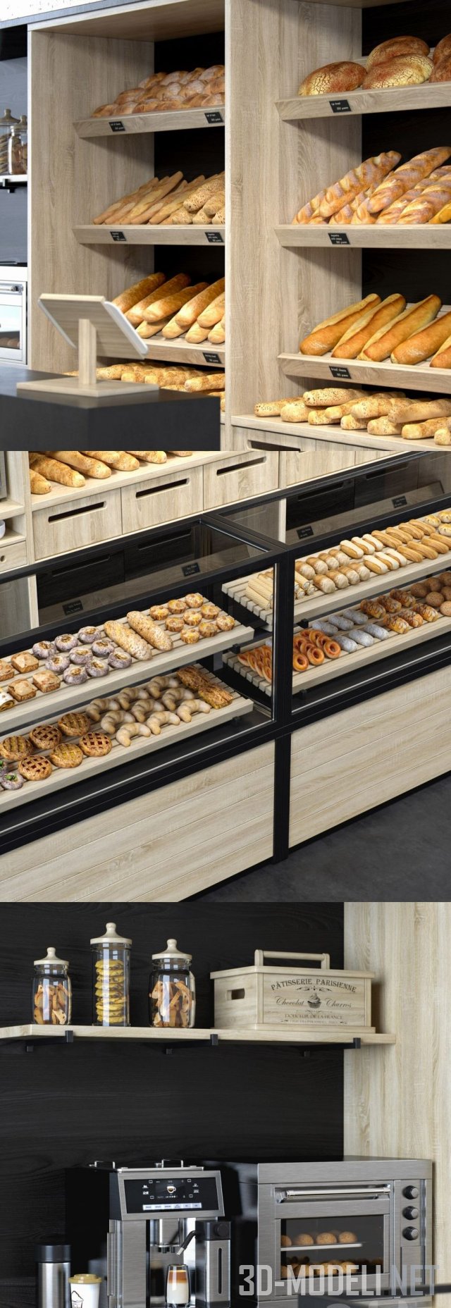 Торговая витринная система Bakery, с кофемашиной и выпечкой, а также хлебо-булочными изделиями. Размеры секции: