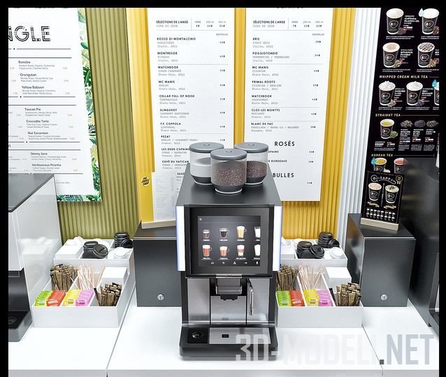Мебельная конструкция с фасадами разного цвета является основой для кофемашины WMF Coffee store. В наборе 4 варианта кофемашины: