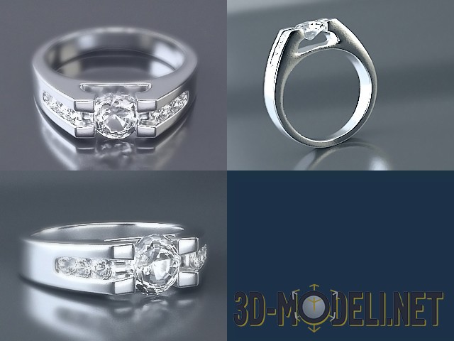 3D модель классического кольца, украшенного бриллиантами. Классический, элегантный дизайн делает такое кольцо истинным шедевром ювелирного искусства.