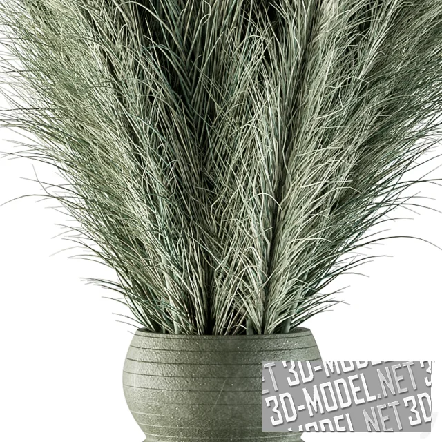 Высокая напольная ваза строгой цилиндрической формы с легким сужением в верхней части и матовой фактурой, напоминающей керамику или камень, является гармоничным выбором для зеленого букета. Поверхность вазы в спокойном зелено-сером оттенке делает ее универсальной для современных интерьеров и является логичным продолжением для густого букета длинных тонких травянистых побегов, создающих эффект легкости и природной воздушности. Такая композиция хорошо подходит для оформления жилых пространств, холлов, зон отдыха, салонов и фотостудий, добавляя интерьеру естественности и мягкого декоративного акцента.