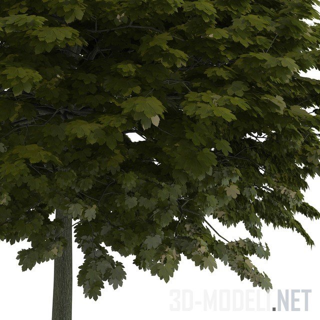 Взрослое дерево декоративной штамбовой формы норвежского клена платанолистного. Прямой ствол венчает аккуратная шаровидная крона с листьями зелёного цвета и характерной формы широкой резной листовой пластины.