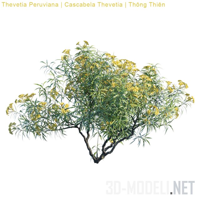 Thevetia Peruviana, Cascabela Thevetia), является родственником олеандра. 3d модель выполнена реалистично, текстуры в архиве.