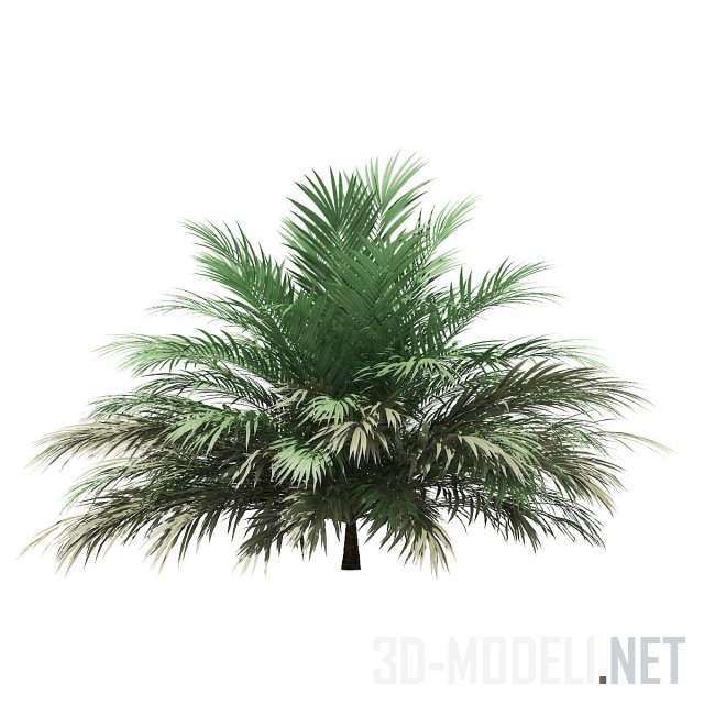 Комплект из пяти штук тропической пальмы Бутия - 3д модели с разной геометрией, для заполнения экстерьерных сцен методом "скаттеринга" или вручную. Каждый объект имеет высокую детализацию, эти пальмы пригодны для близких рендеров. Рекомендуем использовать vray proxy для уменьшения количества полигонов в кадре.
