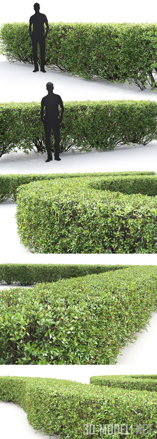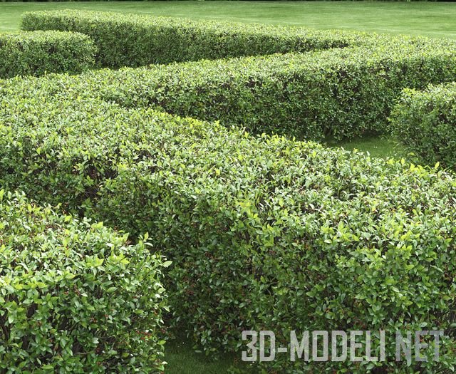 Живая изгородь (растение кизильник), состоит из 5 элементов. Высота 1,3 м, ширина 1,8 м. Центральные элементы можно соединять произвольно, избегая повторения. Строение куста позволяет соединять элементы таким образом, чтобы не создавались слишком плотные участки листьев и веток. Используя модификатор изгиба, легко получить изогнутую форму забора.