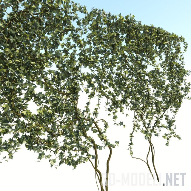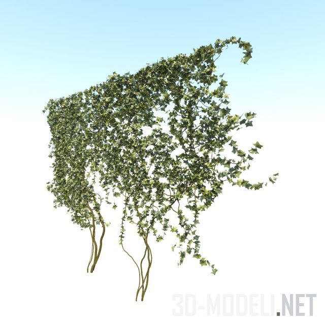 Несколько разросшихся у вертикальной плоскости веток плюща. Из модели может быть сформирован зеленый декор заросшей ограды или стены. Характерной формы листочки создают довольно плотную зеленую массу.