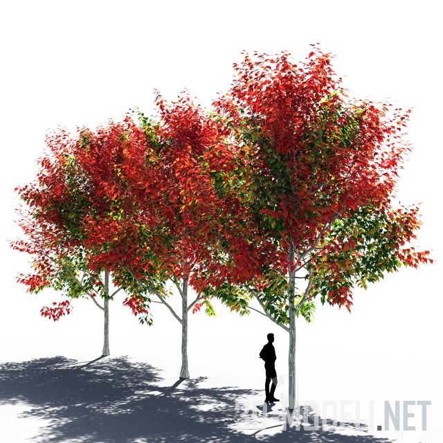 Самое красивое, особенно в осеннюю пору дерево клен. Представлено три, отличающиеся друг от друга, дерева.