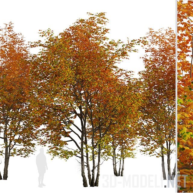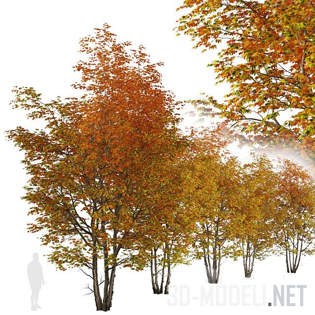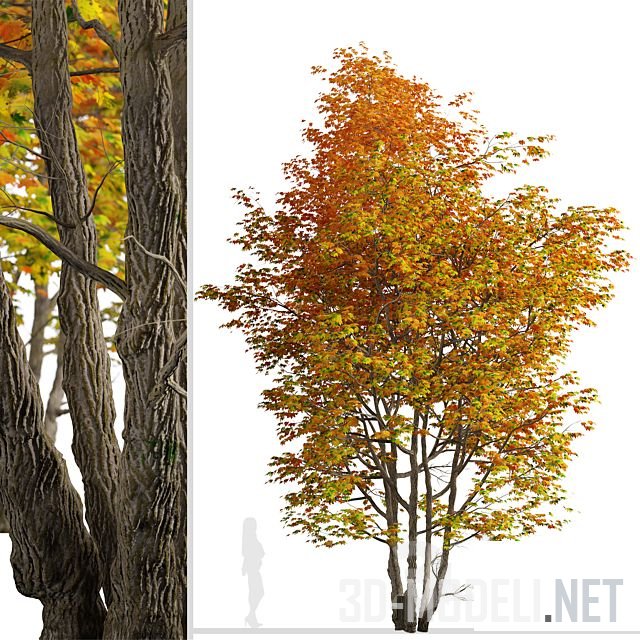 Acer saccharinum). Цветет клен весной красивыми красными цветами. Листья дерева зеленые и серебристые, осенью желтеют. Здесь представлено два варианта клена, высотой 8 и 9 м.