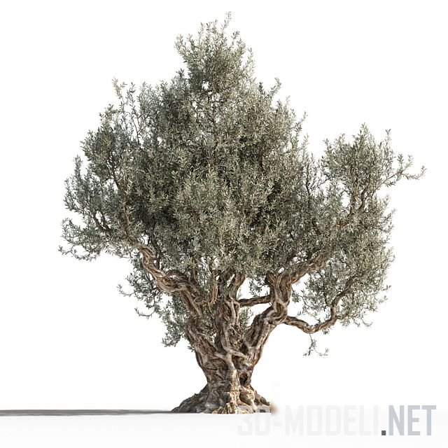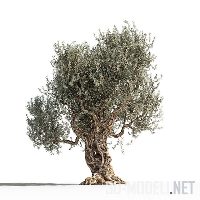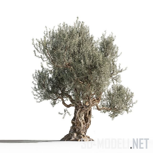 Разросшееся, с толстым закрученным стволом взрослое дерево оливы. Высота дерева составляет 12 м.