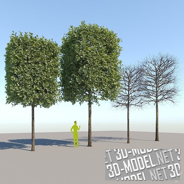 Восьми- и шести с половиной метровые штамбовые формы платана. Кроны деревьев подстрижены в форме вертикального параллелепипеда. Ширина кроны большего дерева - 4х4м. Меньшего - 3х3м. Деревья отлично смотрятся, как высаженные в ряд, так и в одиночной посадке.