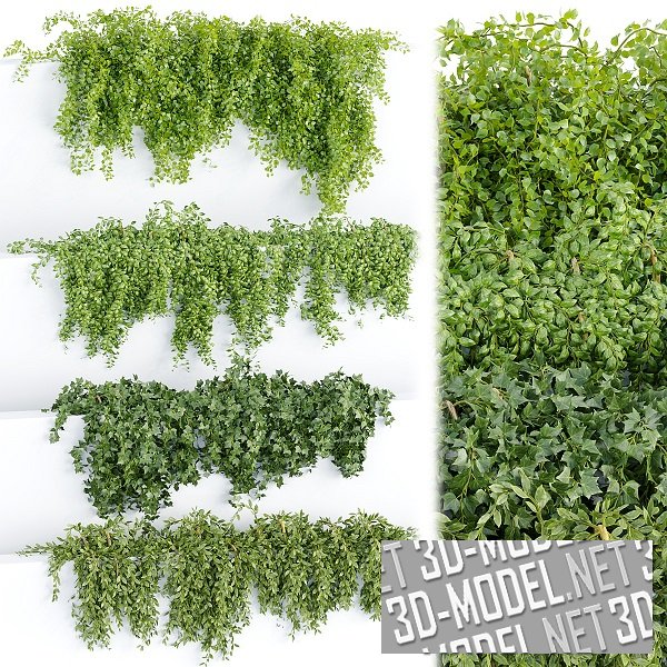 Четыре варианта зарослей ампельных садовых растений для декорирования оград, стен, зданий.