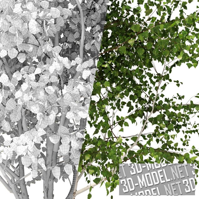3D модель высокого качества, с хорошо проработанной геометрией ствола. Сделана развертка снизу для хорошего отображения сочленения ветвей со стволом. Уникальные текстуры высокого разрешения собраны в архиве.