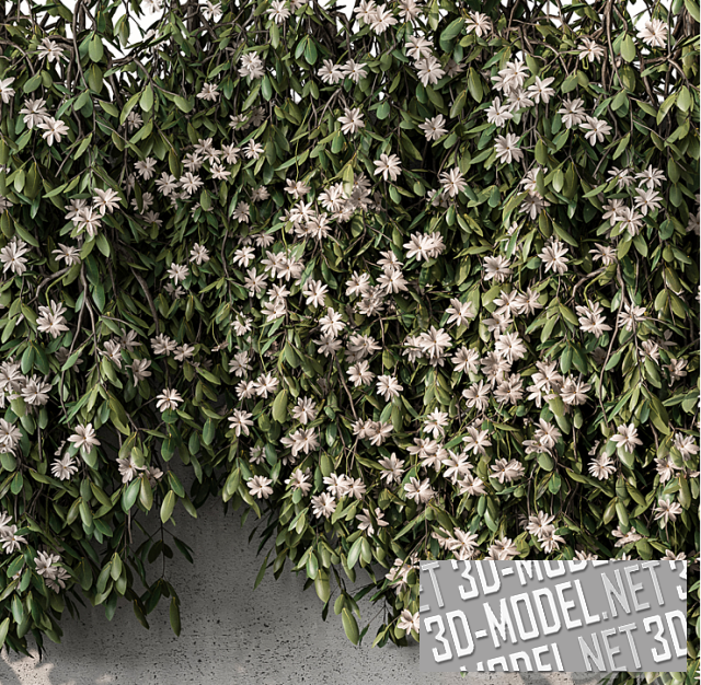 Ампельное растение с белыми цветами в бетонном контейнере