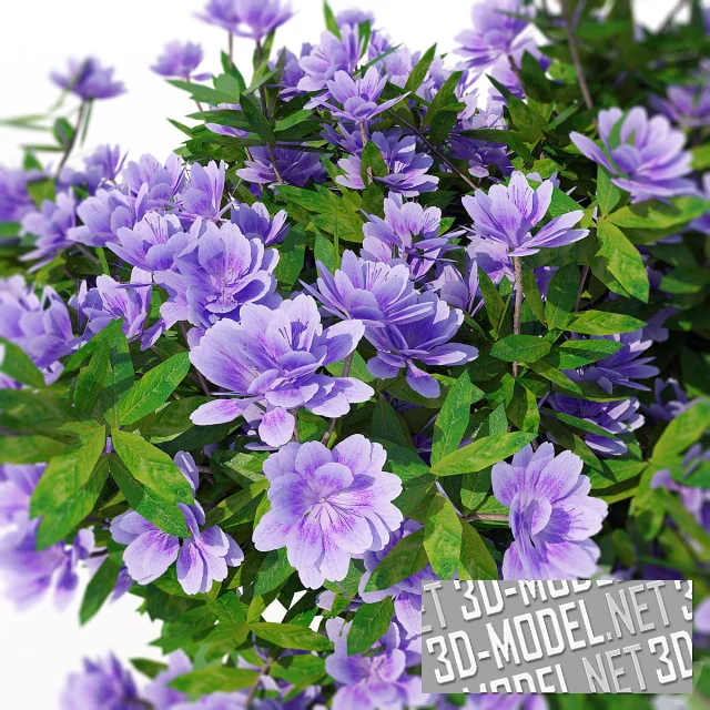 Красивый раскидистый куст азалии (Azalea) с густой зеленой листвой и множеством нежных сиреневых цветов. Послужит прекрасным дополнением к ландшафтному дизайну парков, садов, улиц и домашних участков.