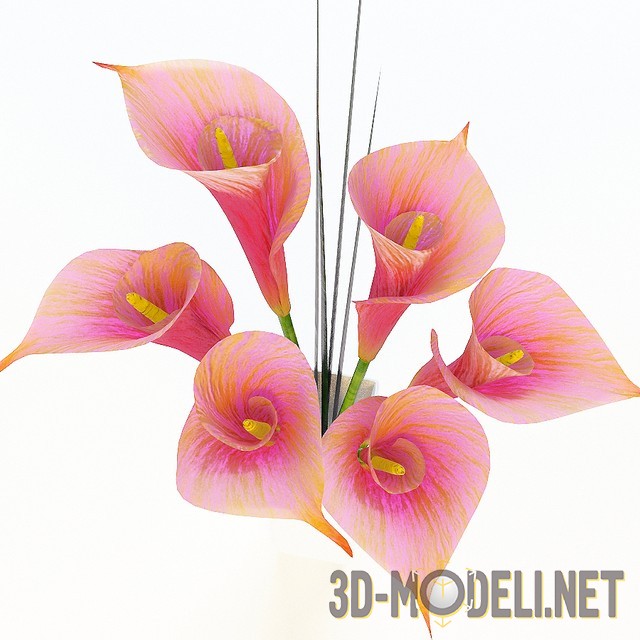 3D модель букета ярких цветов в современной вазе. Такой яркий, жизнерадостный и при этом - очень элегантный - букет ярких цветов, легко и изящно создаст в каждом используемом пространстве свежую, радостную атмосферу.