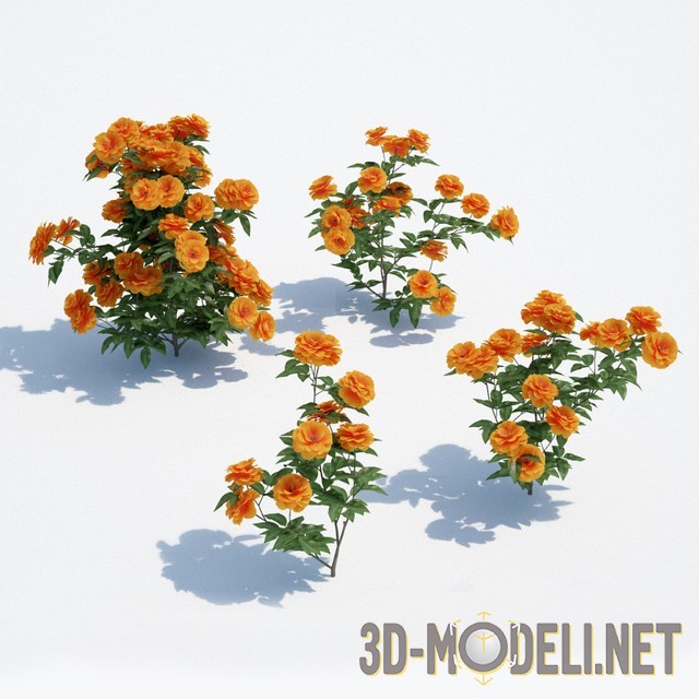 3D модель оранжевыХ цветов, напоминающих мелкие розочки. Их можно посадить в горшок, или же поставить в вазу, создав в интерьере яркий природный акцент.