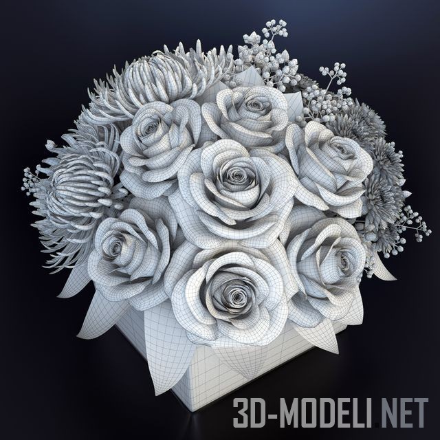 Очень эстетичный букет, состоящий из растений с игольчатыми лепестками зеленого цвета, оттеняющих великолепие и нежность белых раскрывшихся роз. Композиция дополнена небольшими ветками с зелеными листьями и мелкими зелеными шариками, и имеет авторское название «Зеленая фантазия».