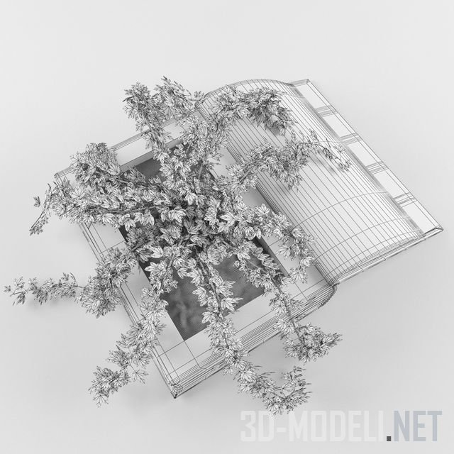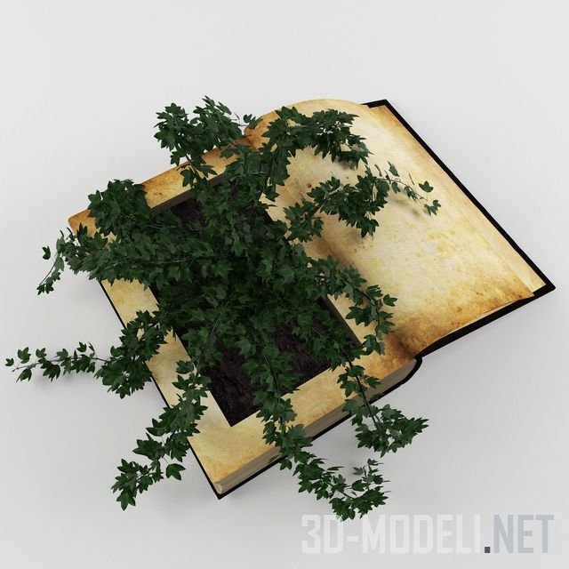 Декоративный лоток в виде раскрытой старой книги. В толще «страниц» -прямоугольный вырез, из которого раскинулись вьющиеся ветки плюща с характерными зелеными листьями.