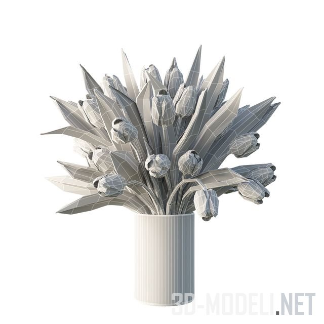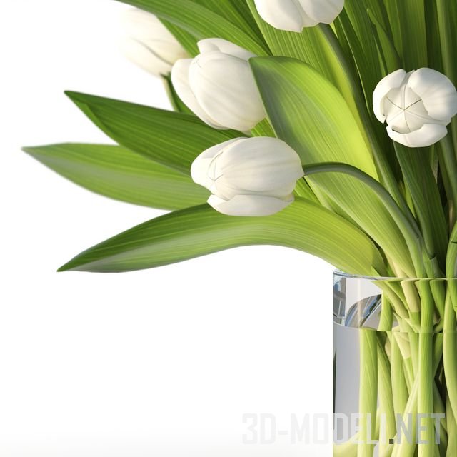 Реалистичная 3d модель букета белых тюльпанов в стакане с водой. Украсит любой проект. Все текстуры есть.