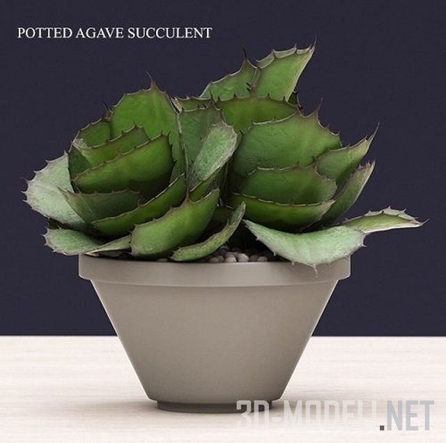 Два разных горшка с суккулентами (potted Agave succulent и Tillandsia succulent stem). Реалистичная модель для декора интерьера.
