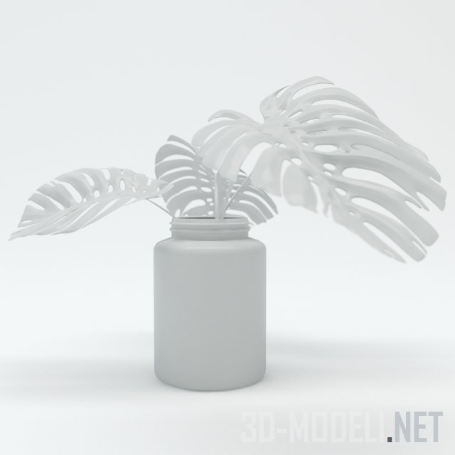 Очень реалистичная модель для декора интерьера, зеленый листья монстеры, поставленные в стеклянную банку с водой.