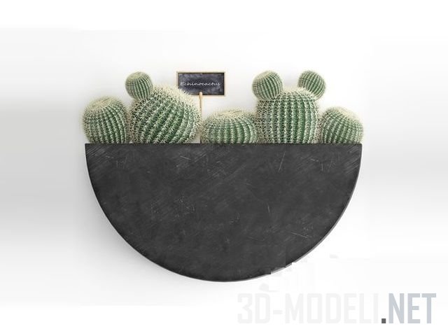Четыре полукруглых кашпо темно-серого цвета с кактусами и мелкими суккулентами. Будут очень стильно смотреться на белой кирпичной стене в интерьере в стиле лофт.