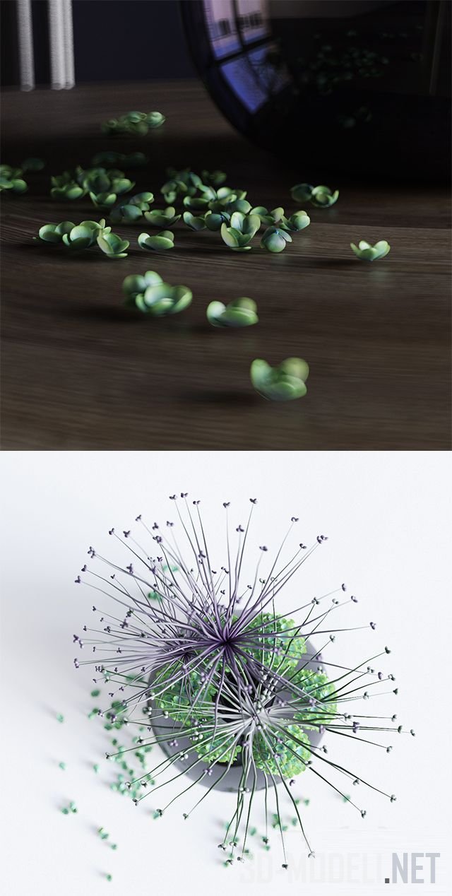 3D-Модель – Комнатные растения – Букет с гортензией в стеклянной вазе