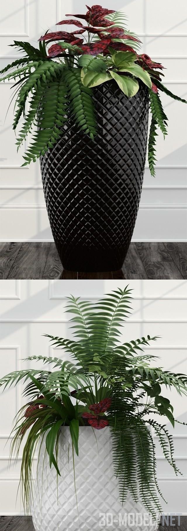 Набор комнатных растений в рельефных, декоративных вазонах в вариантах цвета. poly: 597348 verts: 553945 max: 97mb obj: 59mb