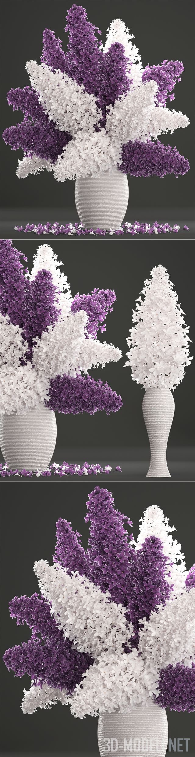 Букет сирени в белой вазе, два варианта (ветка белой сирени в узкой вазе и микс белой и розовой в более низкой и широкой вазе). Композиция станет весенним дополнением к любому пространству.