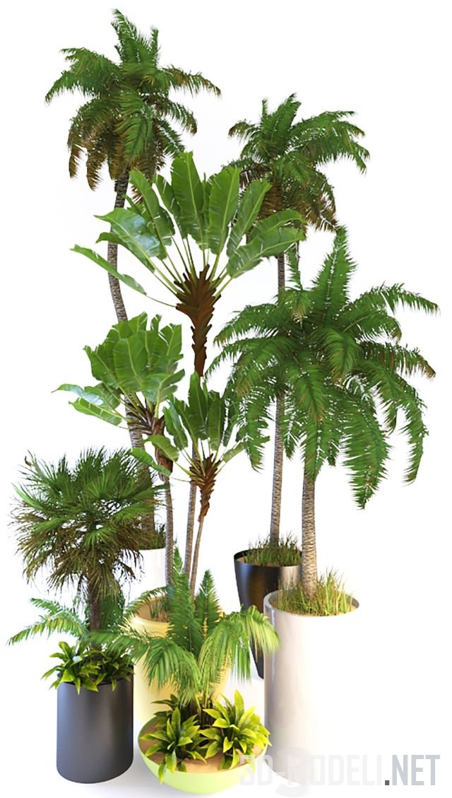 Набор пальмовых деревьев для интерьера оранжерей или зимних садов. В комплекте такие виды пальм, как дерево путешественника, кокосовая и финиковые пальмы, пальма Ливингстона.